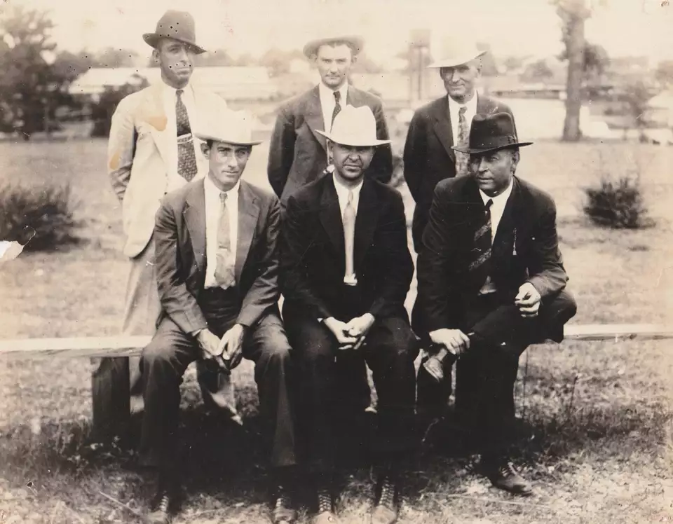از سمت چپ ، کلاید بارو، هنری متوین و ری همیلتون
